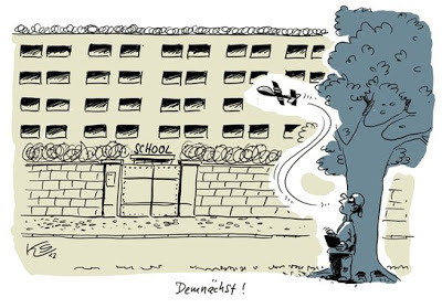 The NRA's solution to gun violence: more guns, more fearSomehow I listened to the presentation on Friday by the NRA's Wayne LaPierre without gaq reflexes kicking in. If you want to try it yourself, here's the whole thing, courtesy of PBS Newshour, NRA's Wayne LaPierre Calls for Armed Security in Every School 12/21/2012:LaPierre proposes armed security guards at every school as an excuse not to have any restrictions at all on the manufacture and sale of the kinds of weapons that were not so long ago banned as "assault weapons". But this week's Facebook setting don't seem to allow it. German cartoonist Klaus Stuttmann has a drawing (12/17/2012) of what LaPierre's ideal of a public school would be, captioned "the next thing". Also, the Christian homeschool lobby would love to have public schools looking like this to market against. I wonder how many Christian homeschooling arrangements, which sometimes include classroom-size gatherings, have armed guards present trained to take down well-trained survivalists with automatic weapons and body armor. For that matter, how many private elementary/middle/high schools have them? But the NRA sells fear, and they are pretty successful at it. I haven't checked the figures, but I assume that there are lots of urban schools that may be near high-crime areas that have extra security coverage. Also, there's this story: Amanda Terkel, Columbine High School Had Armed Guards During Massacre In 1999 Huffington Post 12/21/2012. Obama is endorsing the idea of an assault weapons ban, something he has nominally supported during his entire Presidency and done little or nothing to actively promote. How much we should expect from his vague calls for doing something is well illustrated by this animated cartoon from Mark Fiore, Condolencer-In-Chief 12/20/2012 (embeddeing not available). There are a couple of things that I'm watching about Obama's position on gun violence. One is the connection he is careful to make between everyday street violence, illustrated by this screen shot from the Huffington Post homepage of .... The Huffington Post has been pushing Obama's framing in this sense in their coverage the last several days: "We may never know all the reasons why this tragedy happened. We do know that every day since [the Newtown], more Americans have died of gun violence," Obama said on 12/19/2012: The other is the stress he places in his presentations on security. For example: And every parent knows there is nothing we will not do to shield our children from harm. ... That this job of keeping our children safe, and teaching them well, is something we can only do together, with the help of friends and neighbors, the help of a community, and the help of a nation. ... Can we honestly say that we’re doing enough to keep our children -- all of them -- safe from harm? ... If there is even one step we can take to save another child, or another parent, or another town, from the grief that has visited Tucson, and Aurora, and Oak Creek, and Newtown, and communities from Columbine to Blacksburg before that -- then surely we have an obligation to try. (12/16/2012) And so I think all of us have to do some reflection on how we prioritize what we do here in Washington. And as I said on Sunday, this should be a wake-up call for all of us to say that if we are not getting right the need to keep our children safe, then nothing else matters. And it's my commitment to make sure that we do everything we can to keep our children safe. (12/19/2012)These statements in themselves are entirely compatible with Wayne LaPierre's approach. The NRA also claims they want to keep children safe, too, by making sure they are in the presence of loaded guns every minute of their lives. Obama earned an F rating from the Brady Campaign to Prevent Gun Violence for his first year in office: